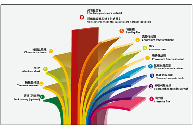 5、按照鋁塑復(fù)合板國(guó)家標(biāo)準(zhǔn) GB/T17748-1999生產(chǎn)的氟碳外墻板,涂層采用70%的氟碳樹(shù)脂,在正常氣候環(huán)境條